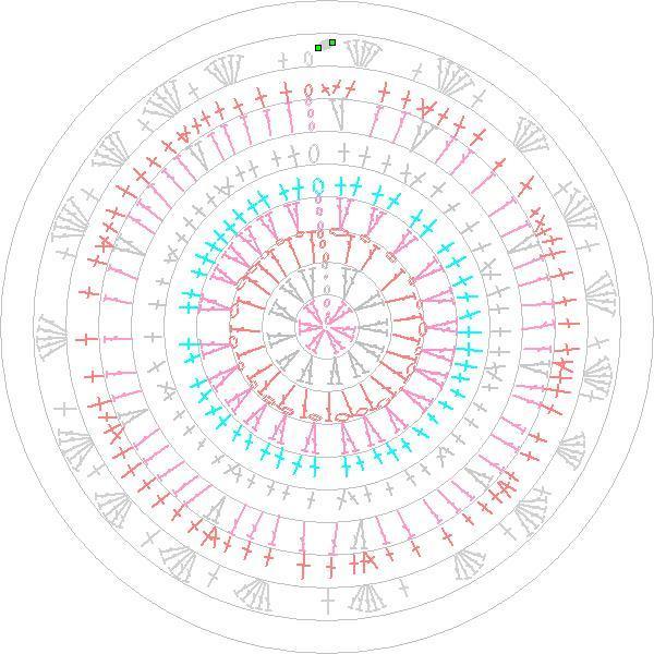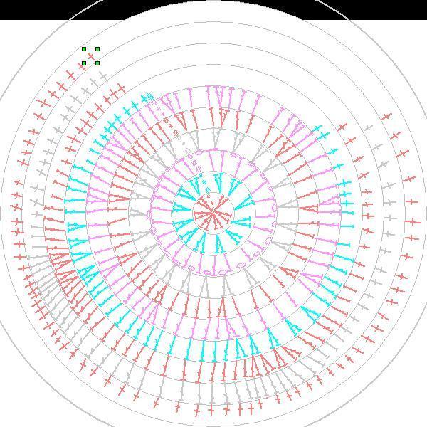 Делаем КА, в него вяжем 1 ряд 12 ССН, далее по схеме(схема по цветам сделана в точности для этой сумки)