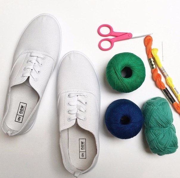 Пара стежков - и простые кеды превращаются легким движением руки в дизайнерские.