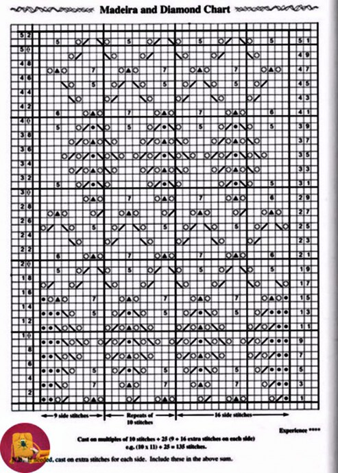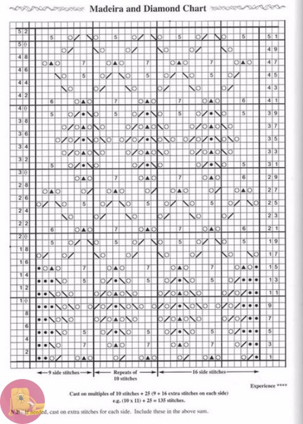 Продолжила вязание уже по этой схеме. С первого ряда до 19, затем пропустила 21 -23 ряды, продолжила с 25 ряда. закончила 39 рядом, дальше закончила просто по рисунку.