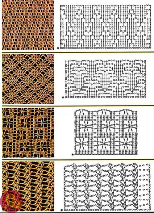 Интересные узоры крючком со схемами, чтобы у вашей фантазии была полная свобода выборав создании новых маленьких и больших шедевров рукоделия.