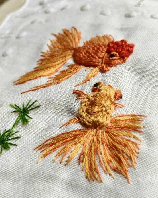 Красота… Соглашусь с предыдущими мнениями очень нужен мастер-класс по вышивке (вывязыванию) объемных цветов, рыбок. Очень красиво, затронуло женские струны души, захотелось вышить такие же!