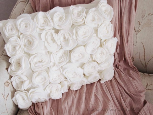 Берем каждую готовую розочку и пришиваем к чехлу.