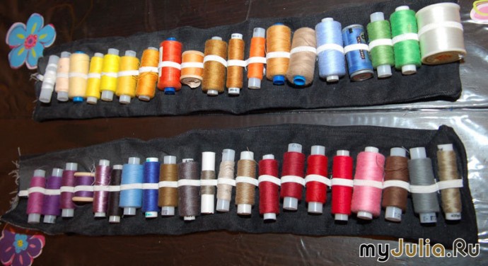 У меня, как и у всех кто занимается шитьем, тоже была проблема хранения ниток. Чего я только не придумывала: хранила и в круглых жестяных коробках из-под печенья, и в многоярусных контейнерах по цветам делила, но все равно было не удобно. Сейчас сделала общую коробку с наклонными ярусами, где все видно, удобно брать и пополнять коллекцию.Есть фото, но не знаю как его прикрепить.