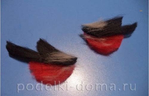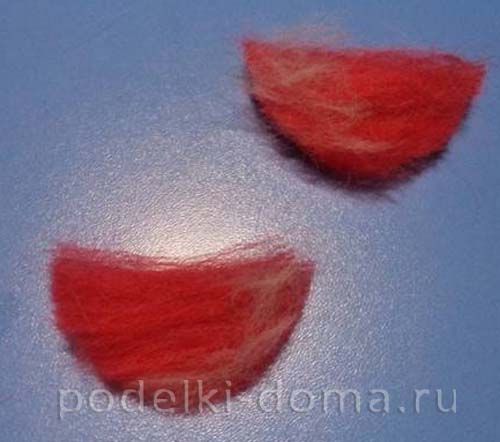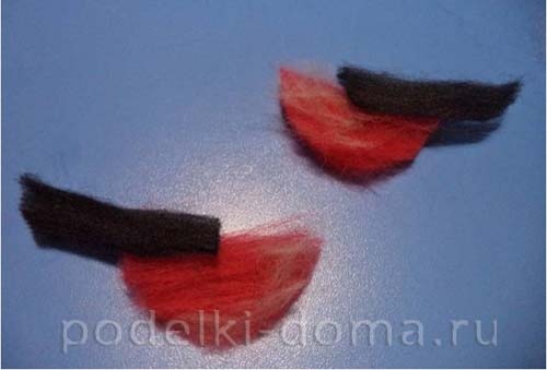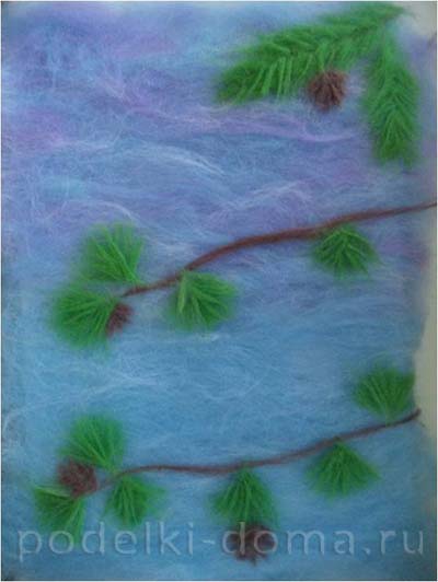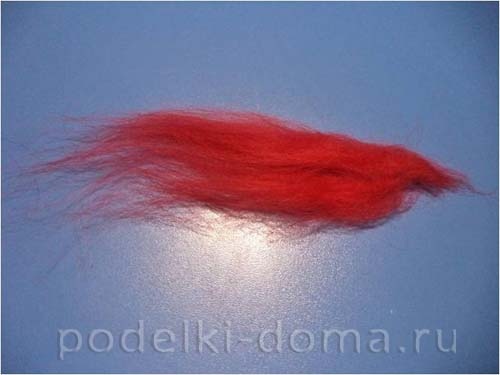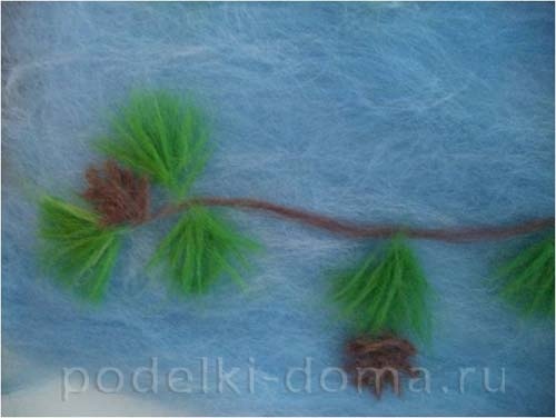 - Шерсть выбранного для основы фона туго обмотать вокруг указательного пальца, последовательно отщипывать кусочками материал.