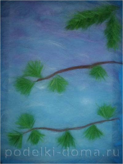- Также последовательно выкладываем дальше щипаные пряди выбранного рисунка. Каждый элемент рисунка подвергаем глажке через чистый лист бумаги.
