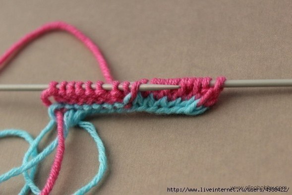 Таким образом, нужно чередовать: изнаночные петли провязывать из изнаночных, а лицевые - из протяжек. Поднимать петли удобно с помощью крючка или дополнительной спицы.