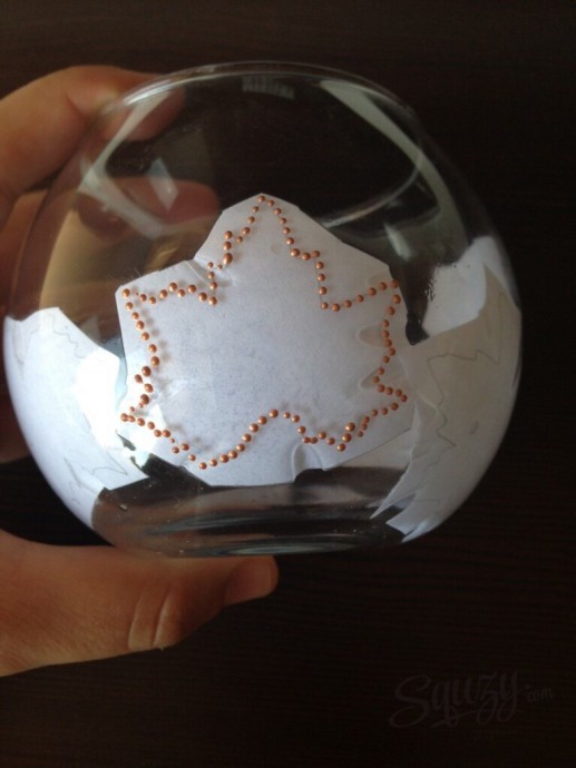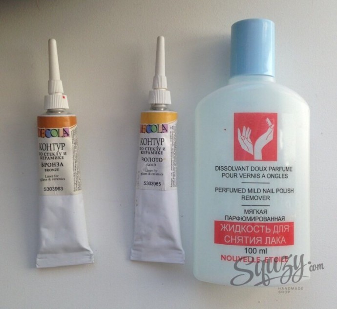 Внешнюю поверхность вазы не забудьте обезжирить. Это обязательно правило при работе с акриловыми контурами и стеклянными или керамическими поверхностями.