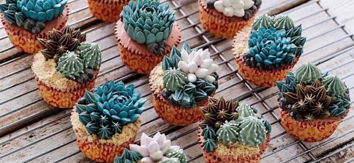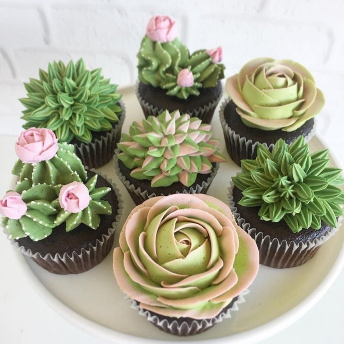 ​На грани кулинарии и рукоделия: кексы в виде суккулентов