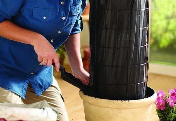Мне тоже интересен этот момент. Можно перед засыпкой землей вставить внутрь отрезок пластиковой трубы с просверленными дырочками. Хотя это спорное решение — корни разрастутся и могут заплести эти дырочки… Девочки-мальчики, подскажите! Возможно, кто-то знает решение
