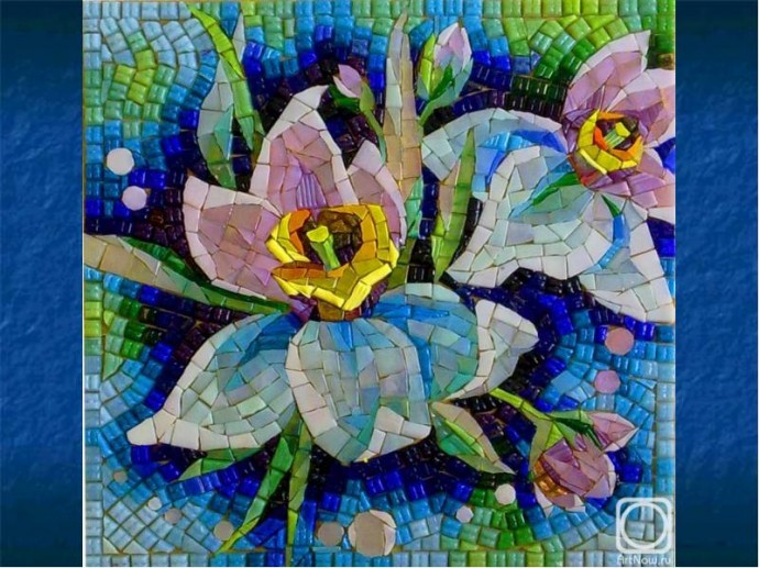Конечно нужна специальная подготовка. Я собираюсь сделать что то подобное, но может так тщательно подбирать цвета. Такую мозаику выкладывают на цветную картинку или копируют с картинки, что намного труднее. Модет худржник модет по памяьи сочеиат цвета и сразу выкрадыаеть из на мощаика- на знаю. Но кусочки мощаики- это не карандаши или кисти, их нужно подбирать и иметь наличии.