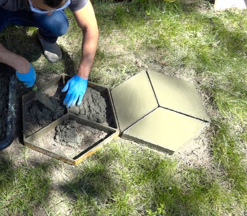 - около 4 мешков цемента, гравий, песок, вода – материал для создания плитки (количество зависит от длины дорожки)