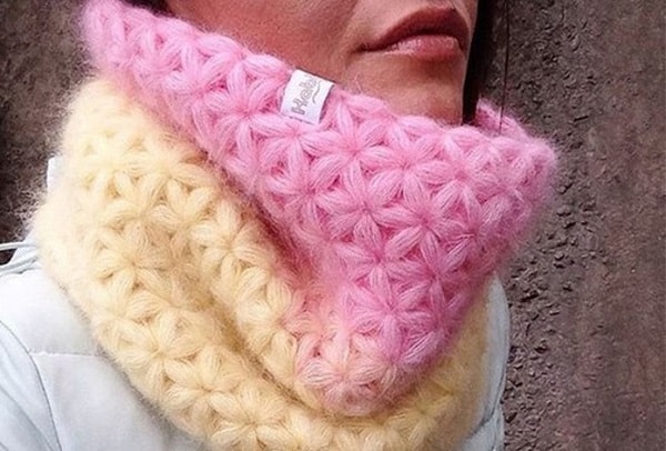 Снуд с красивым переходом цвета связан крючком узором «Звездочки».