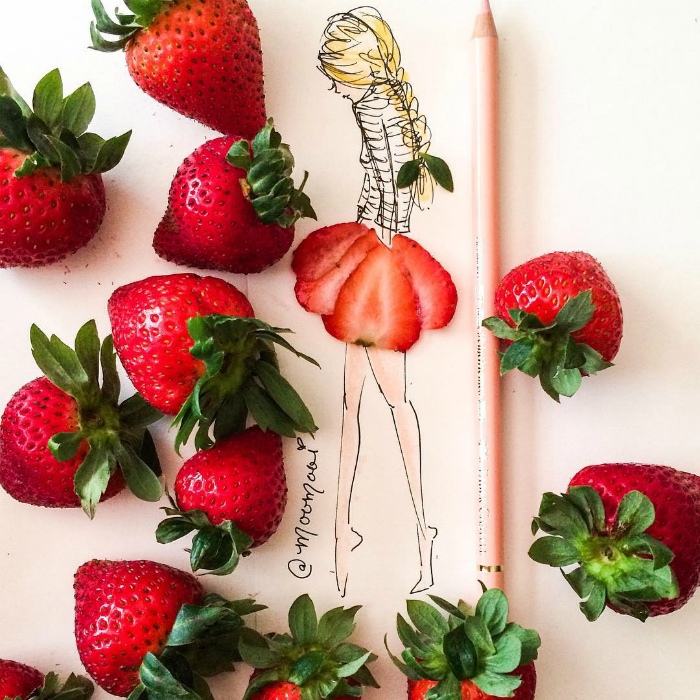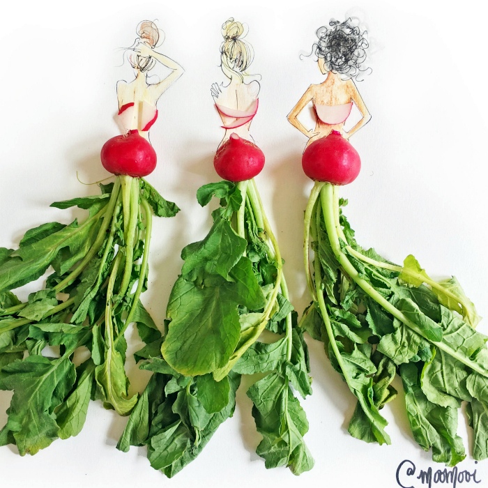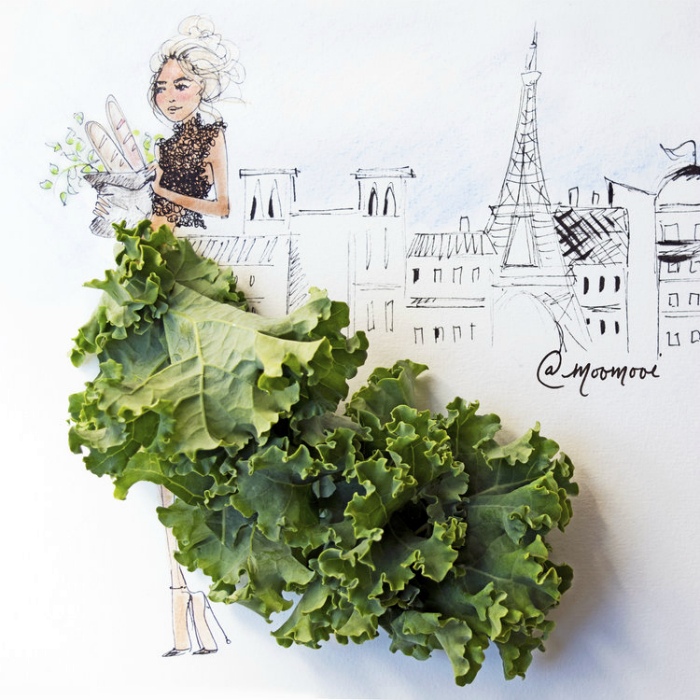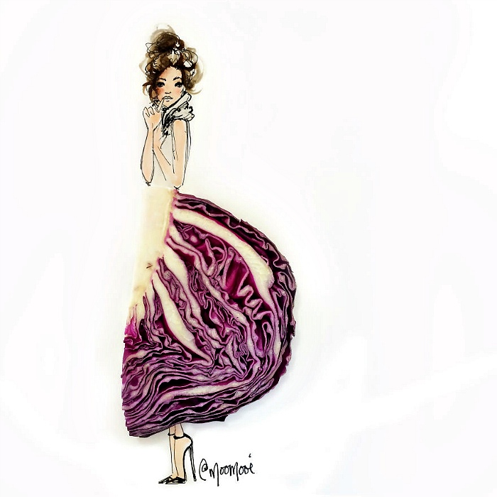 Картины-развлечения с использованием овощей вдохновят вас искать и другие способы нарисовать платье при помощи чего-нибудь растительного.