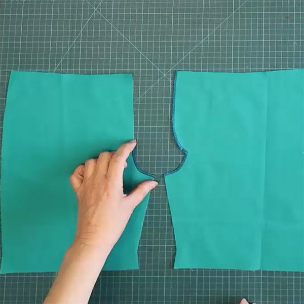 Одна часть (со стороны гульфика) отрезается, вторая (со стороны откоска) обмётывается, как показано на рисунках