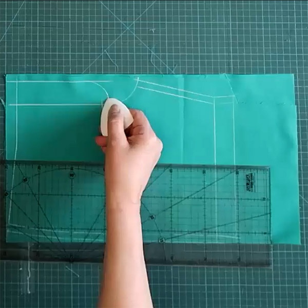 Брюки стачиваются по линии банта (по намеченной меловой линии)