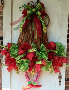 Украшение дверей с лентами и бантами на новогодние праздники не даст ни на минуту забыть о торжествах.