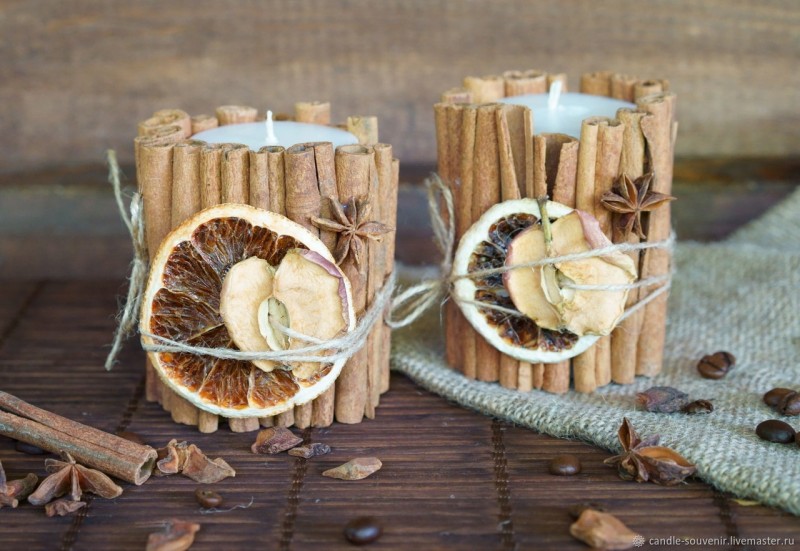 Новогодние свечи с палочками корицы