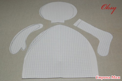 Для начала необходимо нарисовать на бумаге и вырезать основные детали выкройки - тело, голова, нога и рука