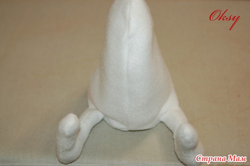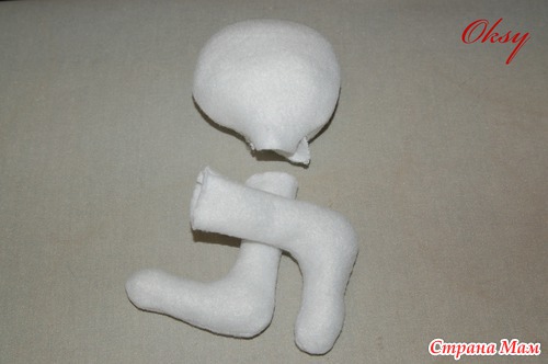 Вырезаем детали, выворачиваем, набиваем синтепоном. Голову набиваем плотно, а ножки слегка, лишь чтобы придать форму.