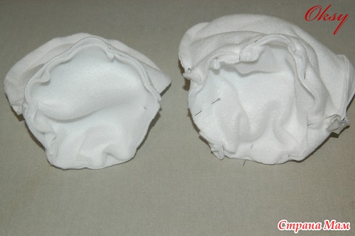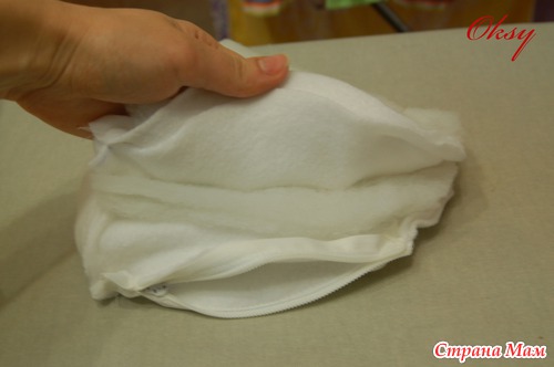 Теперь самое сложное. Необходимо внешнюю деталь туловища соединить с внутренней деталью, проложенной синтепоном и вывернуть через молнию так, чтобы все швы остались внутри.