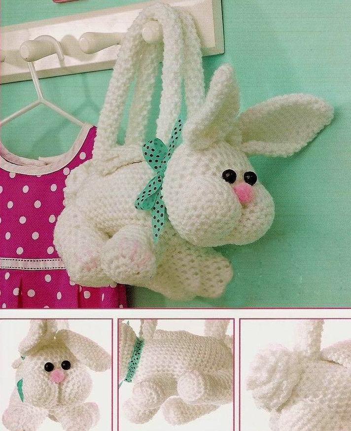 Туловище, голова, ручки и клапан вязать белым цветом.