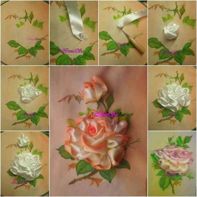 Вышивка лентами: идеи, на которые любоваться одно удовольствие.Посмотреть технику выполнения таких работ можно здесь:https://www.diyideas.ru/19301-uroki-sozdanija-cvet...https://ww...