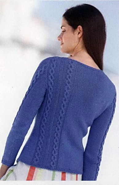 Пуловер спицами со вставками из рельефной косы очарует любого.