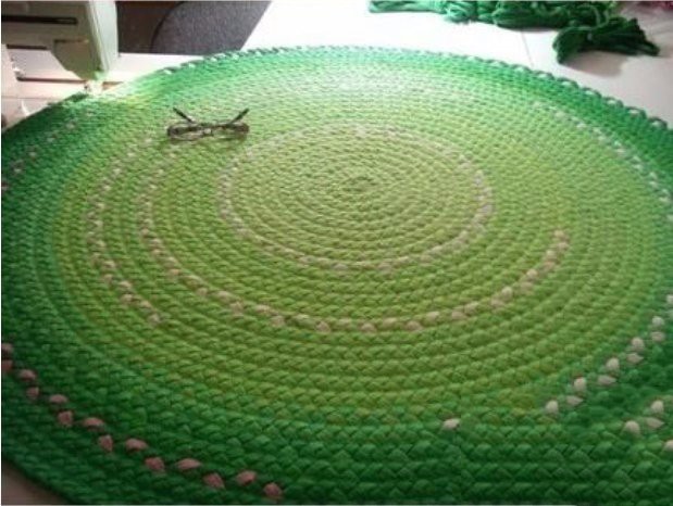 2 способ: заплести из полосок трикотажа косички и сшить их в коврик.