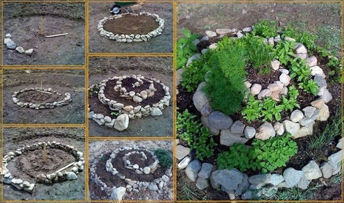 Спиральные клумбы с камнями чудесная альтернатива поднаскучившим классическим.