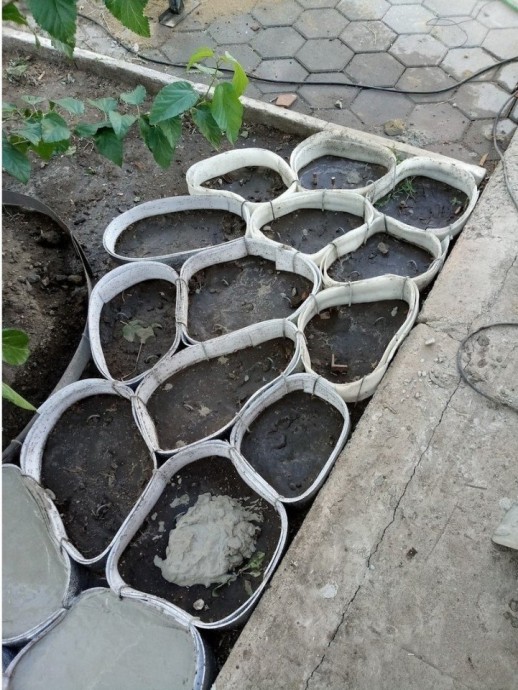 Все красиво, но вот много пустого места между этими плитками выходит… Там сразу трава начнет расти.!!! И еще вопрос- из какого материала сделаны формочки.?