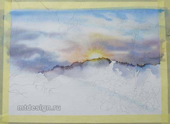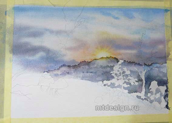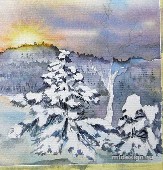 Рисуем горный пейзаж с ёлками, который кажется сложным благодаря своей красоте,