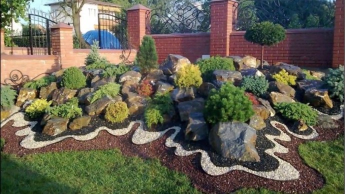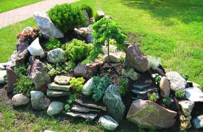 Альпийская горка может совмещать в себе различные виды камней и растений, в зависимости от выбранного дизайна.