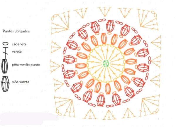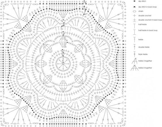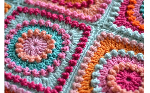 Великолепные объёмные квадратные мотивы крючком со схемами могут использоваться как при создании жилеток или кофт, так и пледов и покрывал.