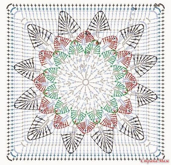Великолепные объёмные квадратные мотивы крючком со схемами