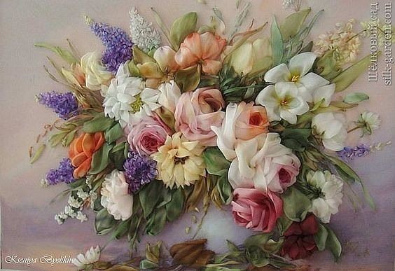 Восхитительные букеты, которые вышиты лентами: идеи для творческого наслаждения