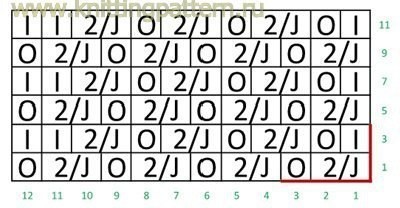 2/J - 1 петлю снимите (нить за работой), 2 лицевые, которые протяните через снятую петлю.