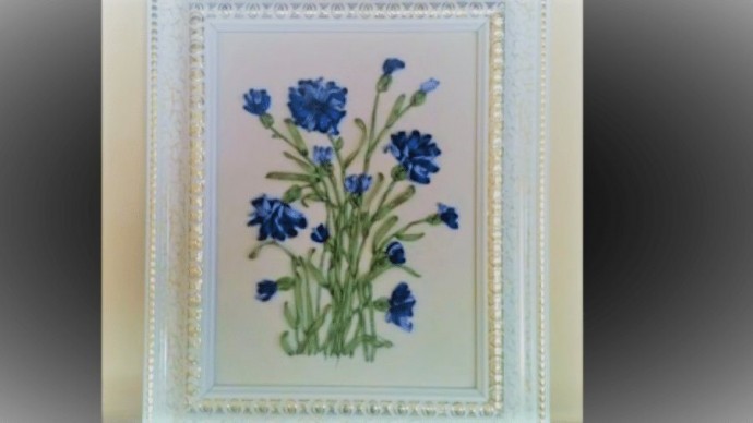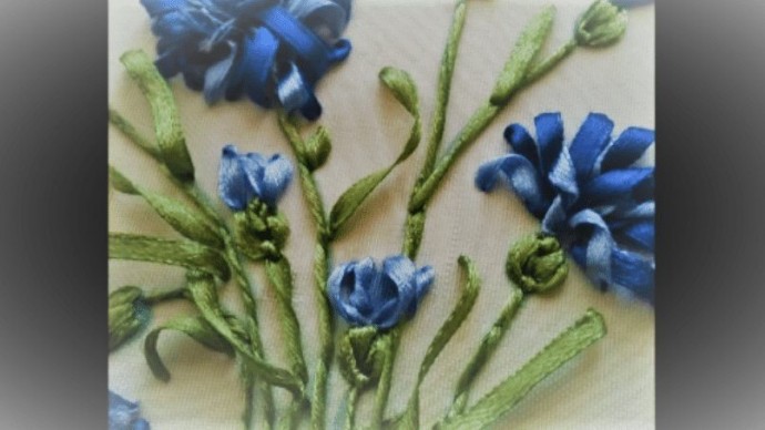 Василёк в технике вышивки лентами: мастер-класс