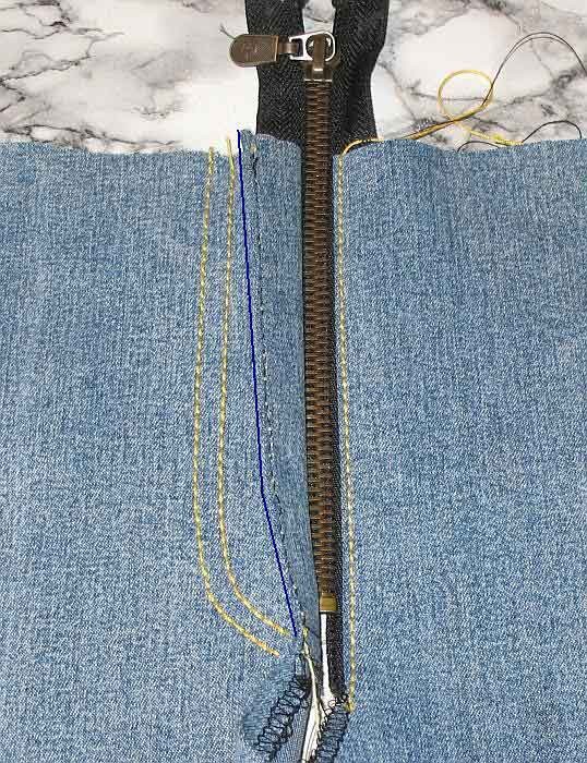 Технология оформления гульфика с молнией на джинсах
