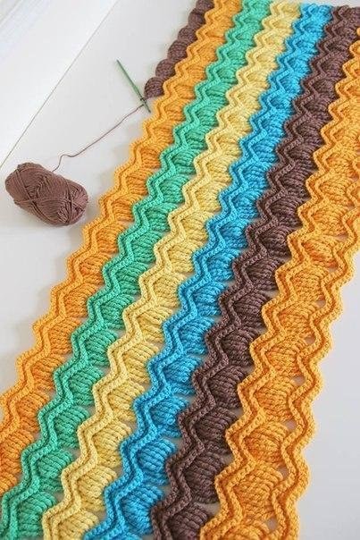 Интересный узор с волнами может быть использован как для всего изделия, так и как кайма, пущенная только по краю.