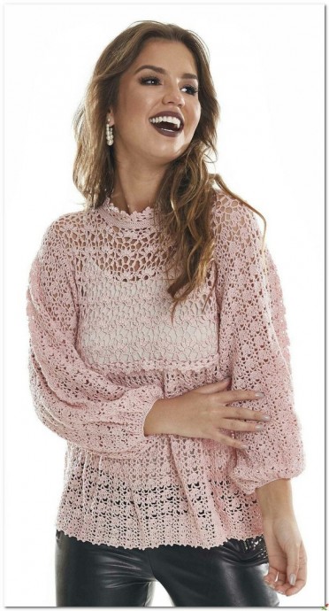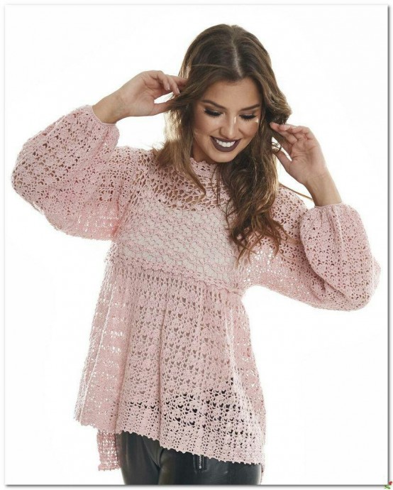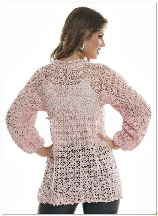 Свободная туника с удлинением сзади выглядит очень нарядно благодаря своей ажурности.