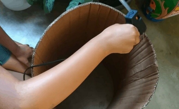 Ну что голову морочите! Корзина из картона с наклеенной веревкой, и на снимках две настоящие плетёные корзины!