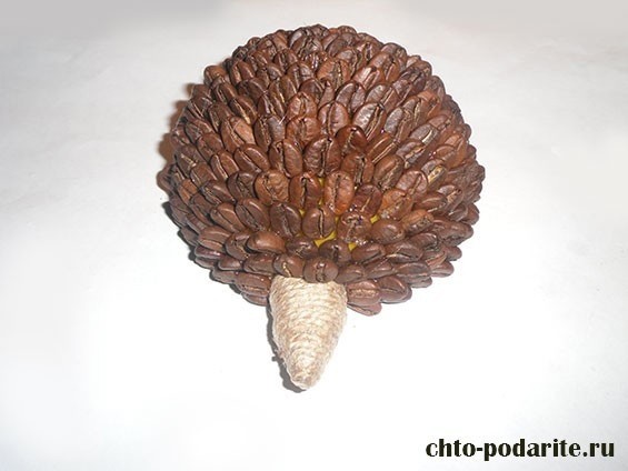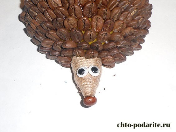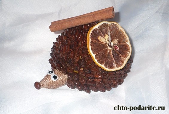Декоративный ёжик из кофейных зёрен будет распространять аромат любимого напитка лучше любого ароматизатора.