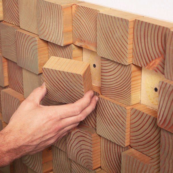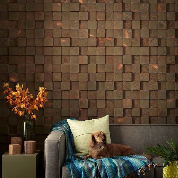 Только подумать о необходимости шлифовки каждой штучки, пропитке огнеупорным и противогрибковым составом, обеспечении вентиляции между стеной и этой сборной деревянной панелью, о классных укрытиях разных букашек в стыках между плашками и т.д, и т.п. Выглядит интересно, но для обычной квартиры и семьи без армии домработниц НЕ ПОДХОДИТ. Это дизайн ради дизайна без связи с реальной жизнью. Как вариант, такое можно применить для самодельного изголовья кровати, но никак не для стен.