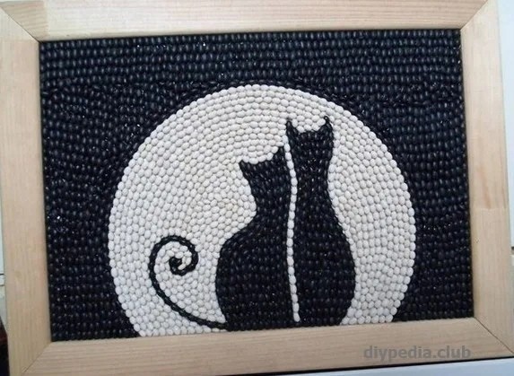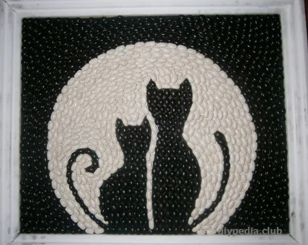 Панно из фасоли "Кот и кошка" вполне в духе весны, когда кошачьи призывы о любви слышны повсеместно.
