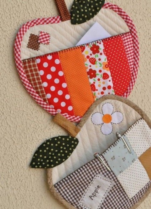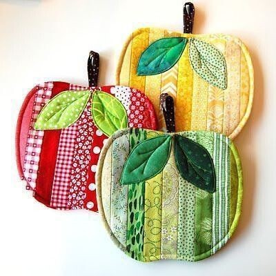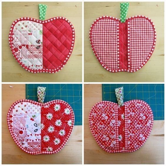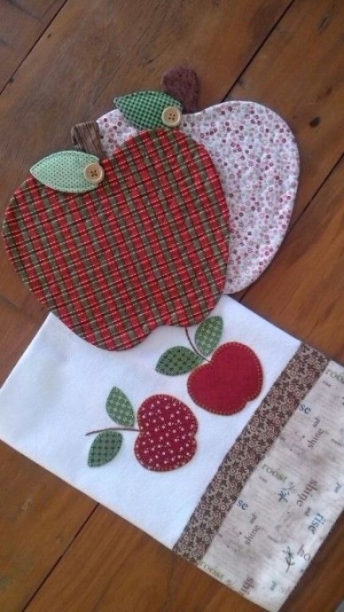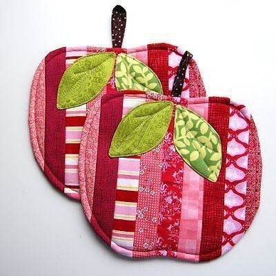 Прихватки в форме яблоче весьма оригинально смотрятся.
