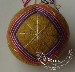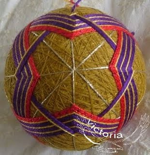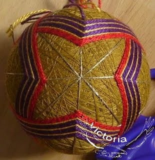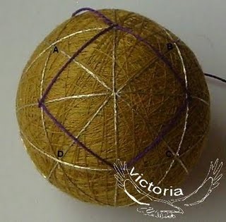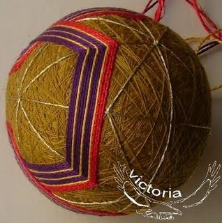 Темари или искусство вышивки на шарах: узор Митсубиси