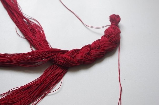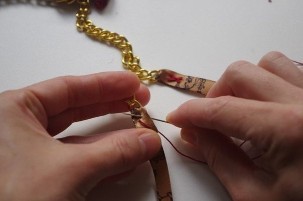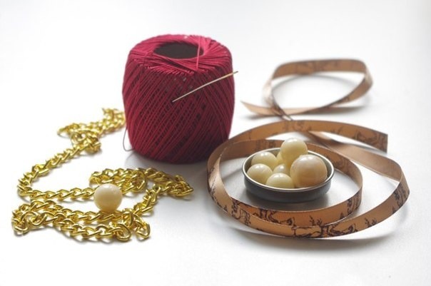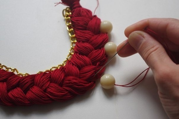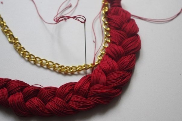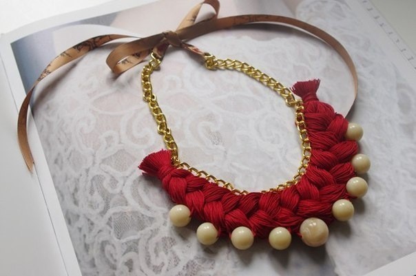Крупное ожерелье из пряжи создается на основе толстой цепочки.