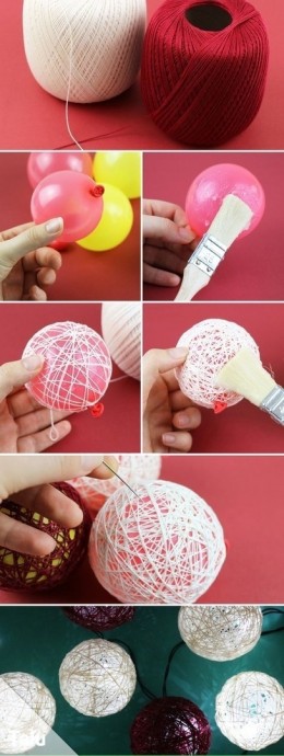 Шары из нитoк для зимнего декора