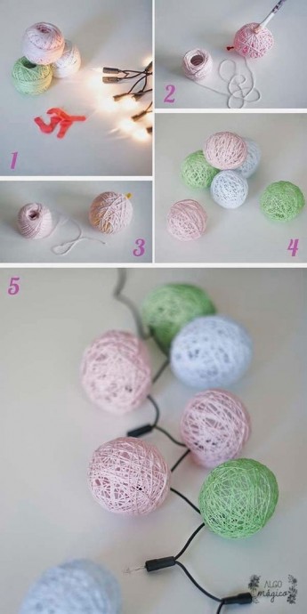Шары из нитoк для зимнего декора могут быть использованы как внутри дома, так и снаружи.