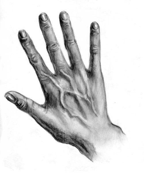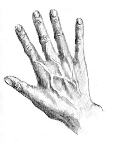 Рука, нарисованная таким способом, очень похожа на настоящую.